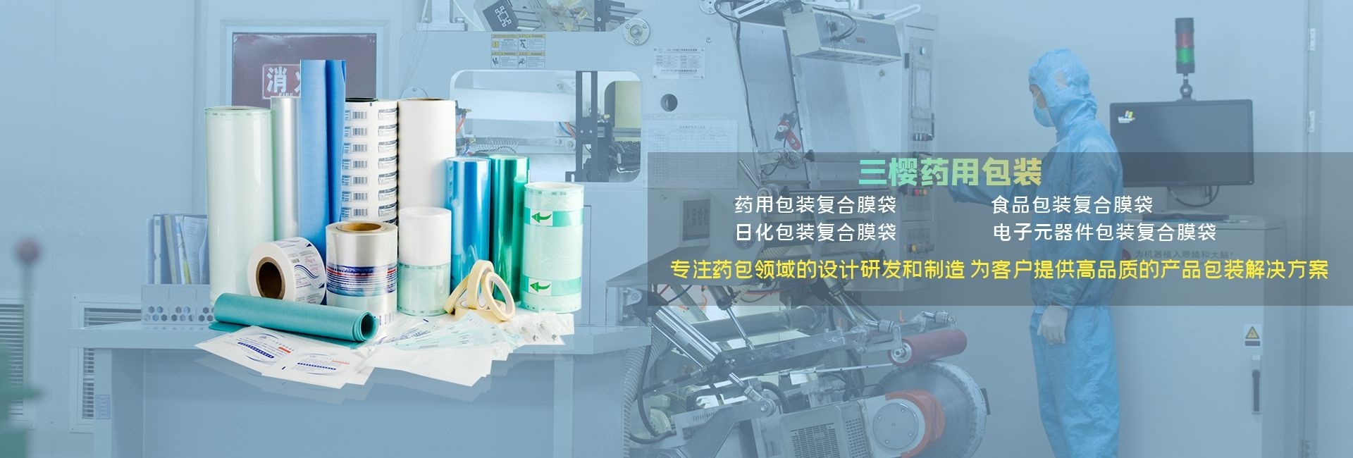南充三櫻藥用包裝材料有限公司位于南充市河舒食品輕紡工業園區,公司秉承“顧客至上,銳意進取”的經營理念,堅持“客戶第一”的原則為廣大客戶提供優質的服務。全廠采用高效能的印刷、復合、分切、制袋等機械。引進具有國際先進水平的全自動電腦控制生產設備及系列檢測設備,既能有效控制產品質量、又降低了生產成本。生產區域均達到十萬級凈化標準,完全遵循「GMP」規格與「HACCP」 管理制度所設計、建造。檢驗中心配備有先進的氣相、拉力、摩擦系數、熱封、恒溫恒濕、氙燈(紫外線)、電子天平秤、透濕、透氧微生物限度等實驗設備。確保